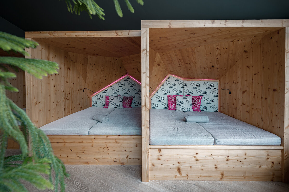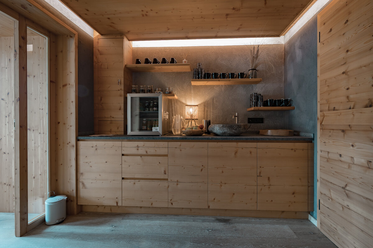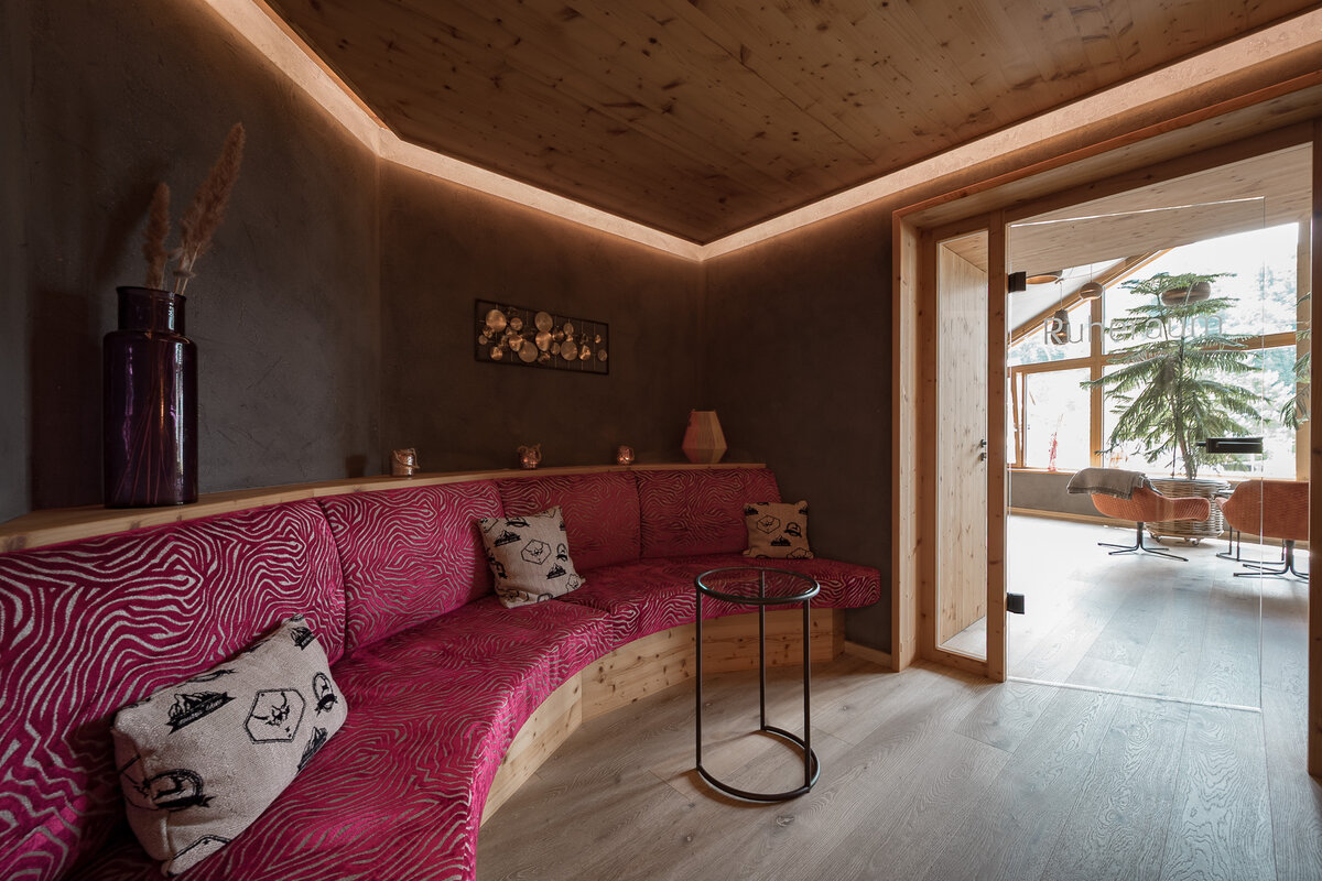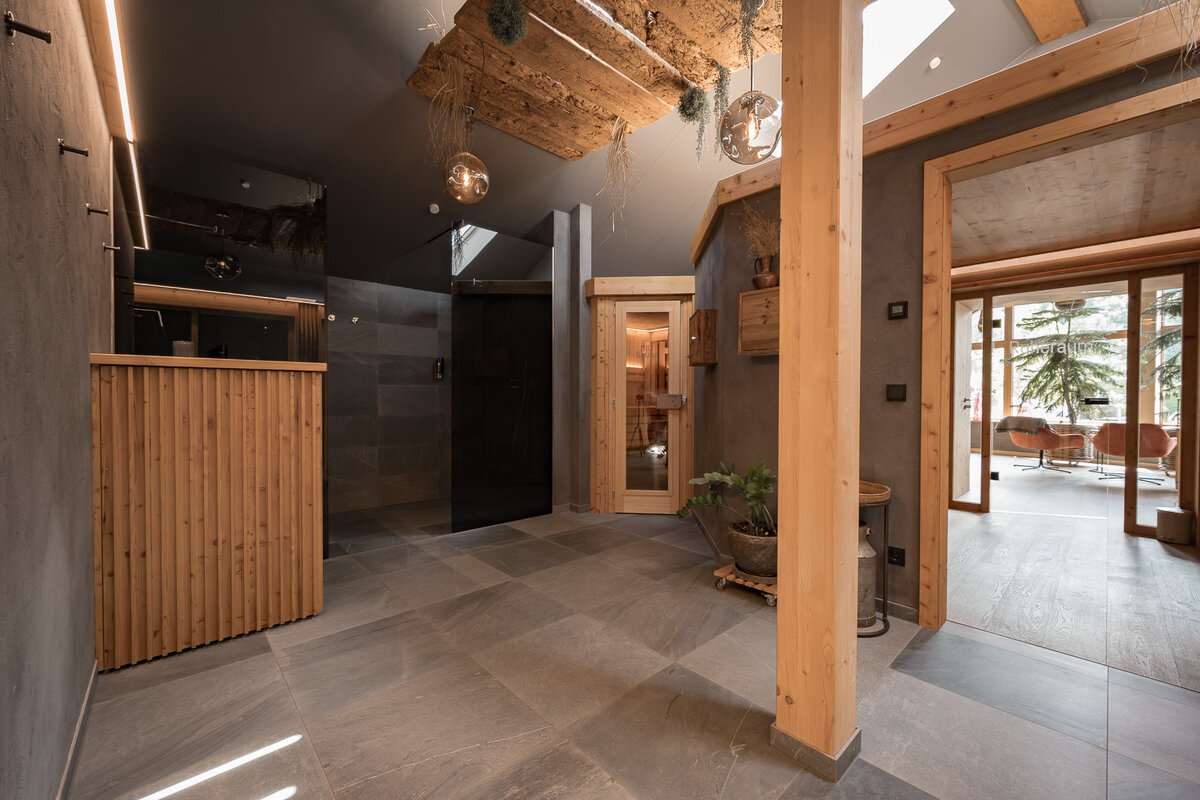 Mit ausgesuchten Materialien aus den heimischen Wäldern und natürlichen Materialien aus der Region holen wir die Natur in unseren SPA-Bereich.